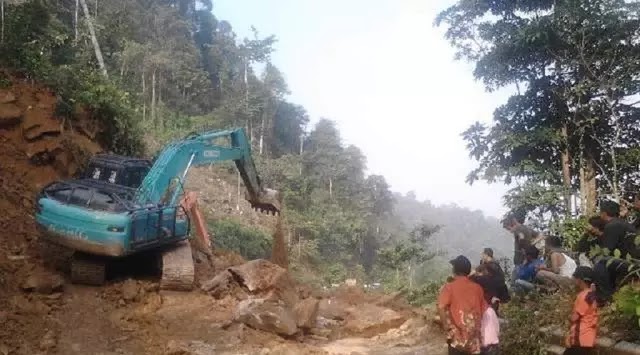 | Alat dikerahkan untuk membersihkan lokasi longsor di Kabupaten Kerinci. |