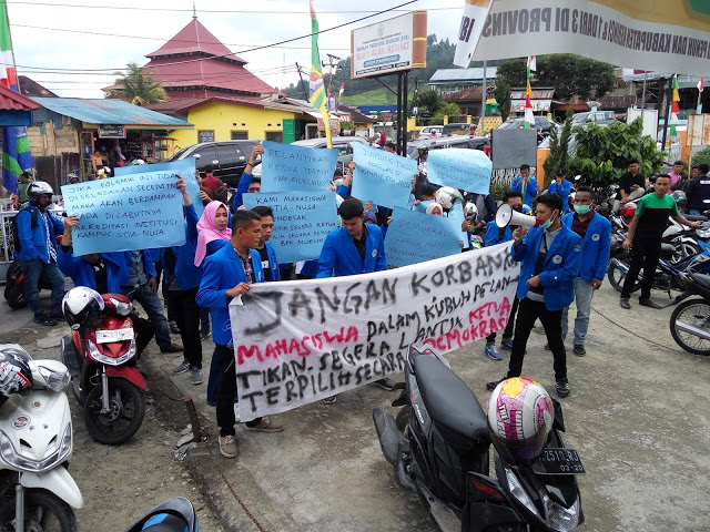 Kerincisungaipenuh.com, KERINCI – Hari ini, Kamis (5/10), sejumlah mahasiswa STIA-NUSA yang terdiri dari unsur BEM & BLM serta mahasiswa gelar aksi unjuk rasa di depan kampus 1 Stia Nusa Sungai Penuh. Menurut mahasiswa yang melakukan unjuk rasa, bahwa aksi ini dilakukan dalam hal menyalurkan aspirasi mahasiswa dalam menanggapi kisruh pelantikan ketua STIA-NUSA Sungai Penuh. Menurut mreka kisruh ini akan berdampak merugikan mahasiswa, dimana tidak jelasnya tentang keabsahan ijazah, disamping itu tertundanya akreditasi institusi akan merugikan semua mahasiswa STIA-NUSA.