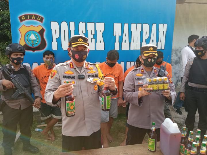 Didampingi Kapolsek Tampan, Kompol Hotmartua Ambarita, Nandang mengatakan hasil produksi sudah sempat beredar di sejumlah kabupaten/kota di Provinsi Riau. Dengan menyasar orang-orang yang sudah mereka kenal.